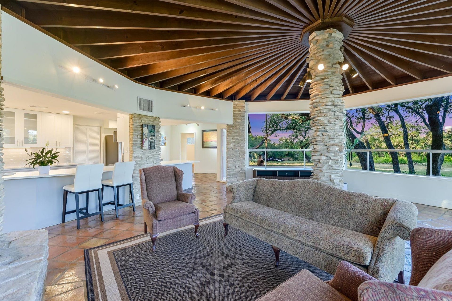 A rare opportunity to own 4 private acres in North Austin, just minutes from Hwy 620 and the Apple campus. Surrounded by mature oaks and natural beauty, this property offers a level of privacy, usable land, and flexibility that is increasingly hard to find this close to the city. The 1964 home blends timeless architectural character with thoughtful modern updates, including a remodeled kitchen, renovated primary suite with a new bath and oversized walk-in closet, updated secondary bathrooms, and fresh interior paint. The centerpiece of the home is a striking living room with mid-century influence, dramatic wood-beamed ceilings, natural stone accents, and a wall of windows that brings the Texas landscape into full view. Whether you're looking for a private residence to enjoy now or a future dream-home site while keeping the existing home as a guest house, the property offers a unique combination of character, functionality, and long-term potential. Just minutes from major employers, dining, shopping, entertainment, and everyday conveniences, the setting feels quiet, secluded, and far removed from the pace of the city. Fully usable 4-acre homesites rarely come available in this market area. Properties like this are hard to replace and even harder to forget once youve seen them.