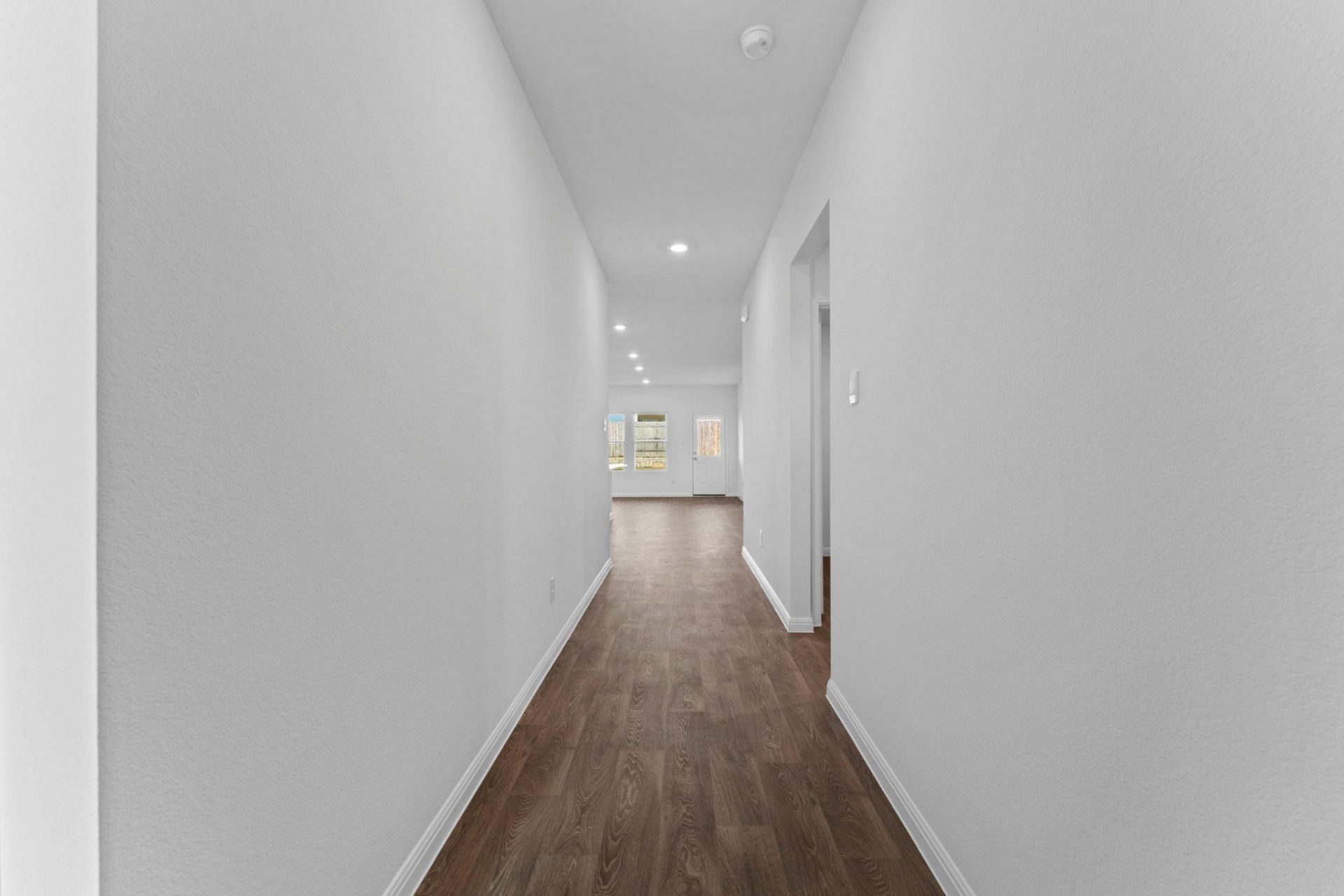 Seller is willing to assist with closing costs or a rate buy-down through preferred lender with an acceptable offer. Find all the space you need in the Easton floorplan at Paramount in Kyle, Texas. This one-story home is perfect for any family, thoughtfully designed with 4 bedrooms, 2 bathrooms, 2 car garage across 1,672 square feet. Walk through the covered entryway and make your way down the hall to the main living space. The kitchen, dining and family room are open, built to make cooking, eating, and entertaining a pleasant experience. The L-shaped kitchen includes quartz countertops, a large island with undermount sink, stainless-steel appliances, 36' upper cabinets, and a corner pantry closet. Enjoy the natural light with three rear windows looking out to the backyard. Off the family room is the primary bedroom, with its own attached bathroom. This relaxing bathroom space features a walk-in shower, marble countertops with dual vanity, separate toilet area with a door, and a walk-in closet. Stretch out and relax at the end of your day in this spacious and private ensuite. At the front of the house, you will find bedroom 3 and 4, with the secondary bathroom conveniently located between the rooms. Bathroom 2 includes a shower/tub combination. Across the foyer and down a short hall is the utility room and bedroom 2. The Easton includes vinyl flooring throughout the common areas of the home and carpet in the bedrooms. The Easton also features extra storage space in the garage, a covered back patio, full sod, and an irrigation system in the front and back yard. This home can be toured anytime using our smart tour function.