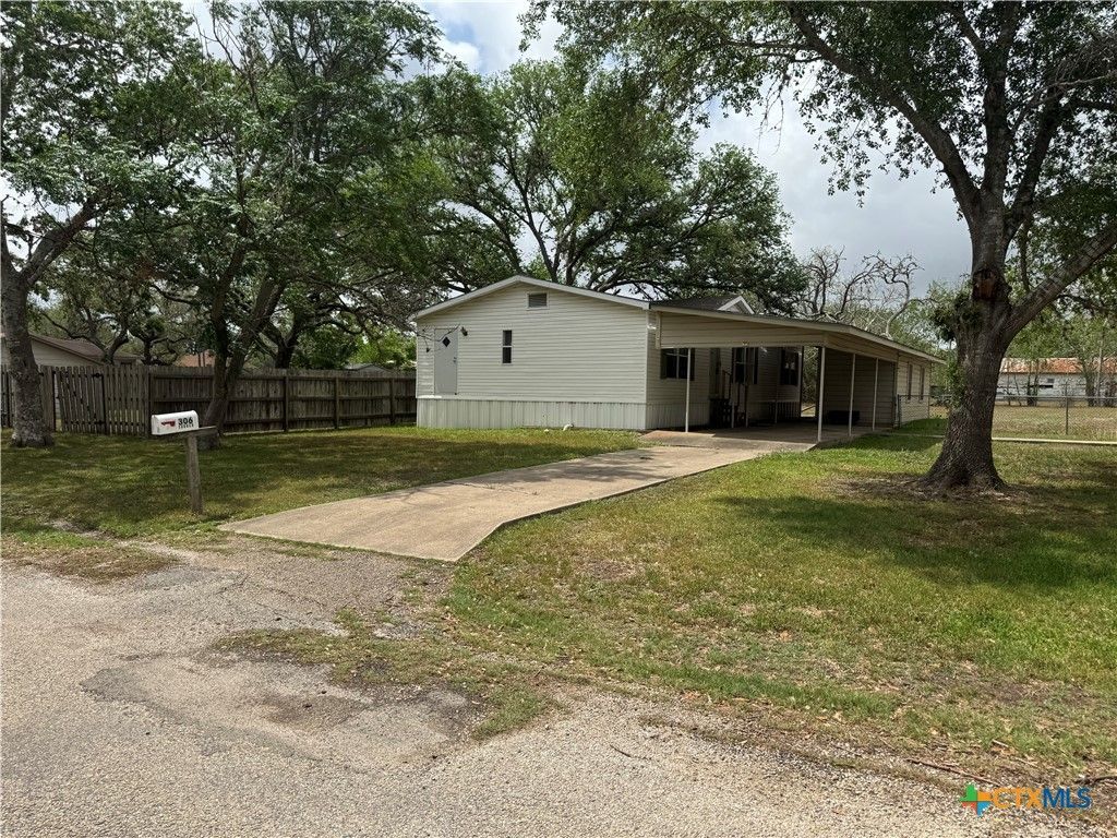 This 1,300 sq ft manufactured home with 3 bedrooms, 2 baths has a large carport, shade trees, and an 8 x 30 storage building and garden shed. The home features a nice kitchen, range stove, vent hood, dishwasher, breakfast bar and dining area, ample cabinets. The split floor plan has the Primary bedroom with separate garden tub and shower, inside laundry. Nice space in the backyard fenced on 2 sides, it is a great place to raise a family. It is near the city park to take the kids to playgrounds, etc. The home has been well maintained.