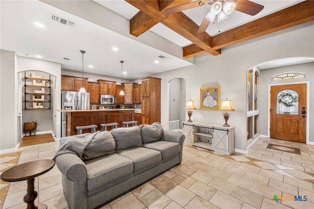 Thoughtfully designed and beautifully maintained, this all brick 4-bedroom, 2-bath home offers comfort, style, and convenience in a prime Copperas Cove location?just minutes from schools, shopping, dining, entertainment, and Fort Hood. The open-concept floor plan is enhanced by a striking coffered ceiling and a cozy wood-burning fireplace with a stone surround, creating a warm and inviting living space. Elegant tile flooring with decorative accents flows throughout the main areas. The kitchen is a standout, featuring granite countertops, upgraded cabinetry, a breakfast bar, and a bright breakfast area?perfect for both everyday living and entertaining. The spacious primary suite offers a walk-in closet, ceiling fan, and a luxurious en suite bathroom complete with a large garden tub, oversized walk-in shower, and dual vanities. In addition to the primary suite, the home features three well-appointed guest bedrooms and a full bathroom, providing ample space and flexibility for family, guests, or a home office. Step outside to enjoy the private backyard, where a covered patio provides the ideal setting for relaxing evenings, weekend gatherings, or family fun. This home combines thoughtful design and desirable features in a location that truly delivers.